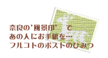ご家族へお友だちへ、 旅先からお便りしてみませんか。 「奈良旅手帖」を繰りながら、奈良での旅プランを考えていただくのも大歓迎です。 |