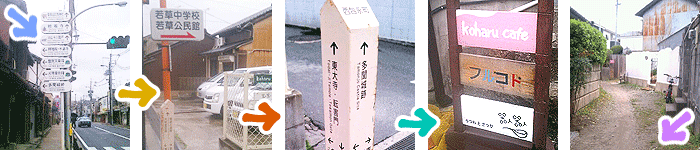 道を入って少し行きますと、右手にこんな看板が | え?ここ? そうです!この路地を ぐぐいとどうぞ! |